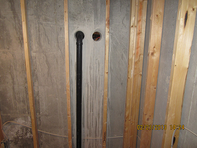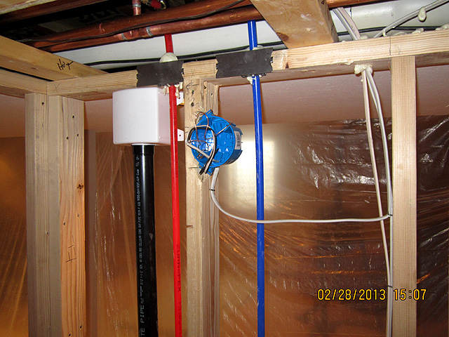 Plumbing and electric above future sink