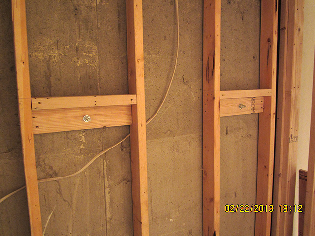 Drywall removed for future bathroom