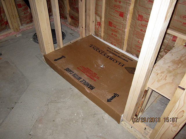 Shower pan is installed and protected